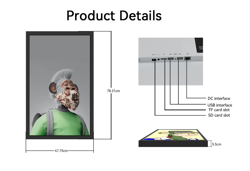 Neue Android WiFi Thin Wall Mount Display Kiosk digitaler Kunstrahmen NFT 21,5 32 43 55 65 75 85 100 Zoll 4Kdigital Photo Frame Film Poster